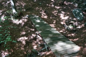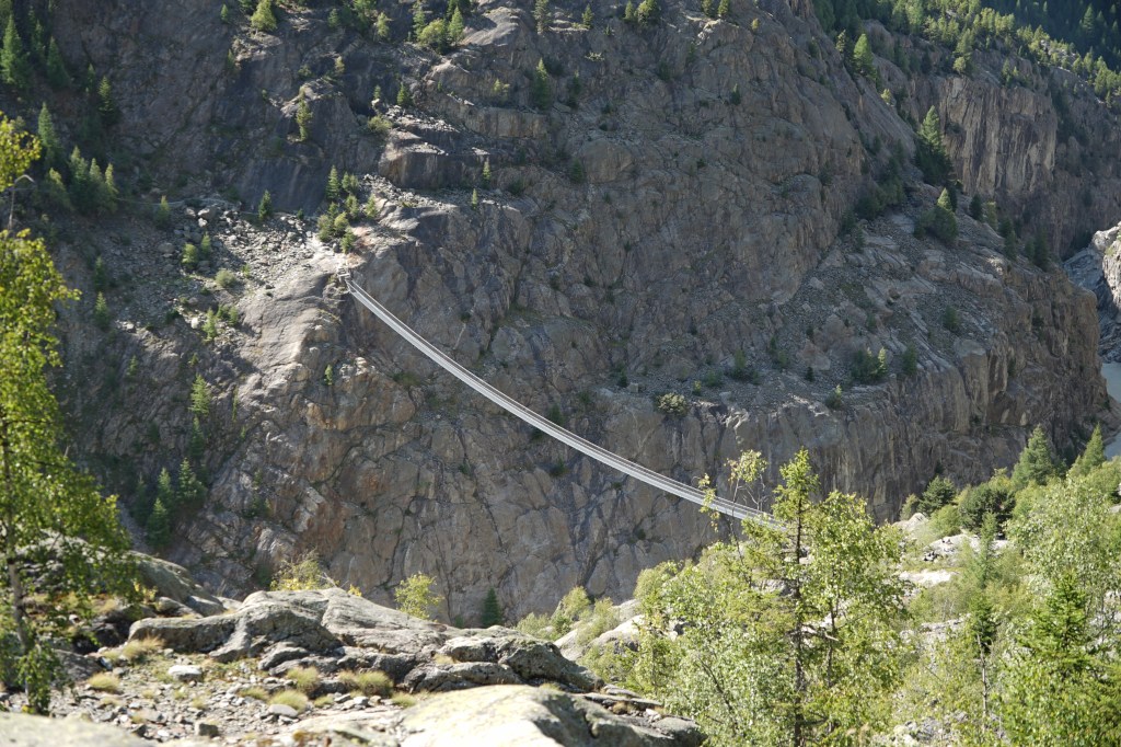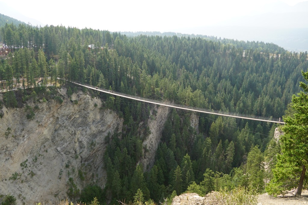 Wir fuhren weiter nach Golden, wo wir zu einem Seilpark geführt wurden. Dort bekamen wir unser Mittagessen. Erst führte uns der Führer über zwei etwas wacklige Hängebrücken, welche eine Schlucht querten. Im Bild die untere Hängebrücke, mit der man zum Eingang zurück kam. Nicht alle Personen kamen mit, ein Paar wartete beim Eingang. Es gab noch andere Attraktionen in diesem Seilpark, Nervenkitzel war garantiert. Die Schlucht mag ca. 160 Meter tief gewesen sein.