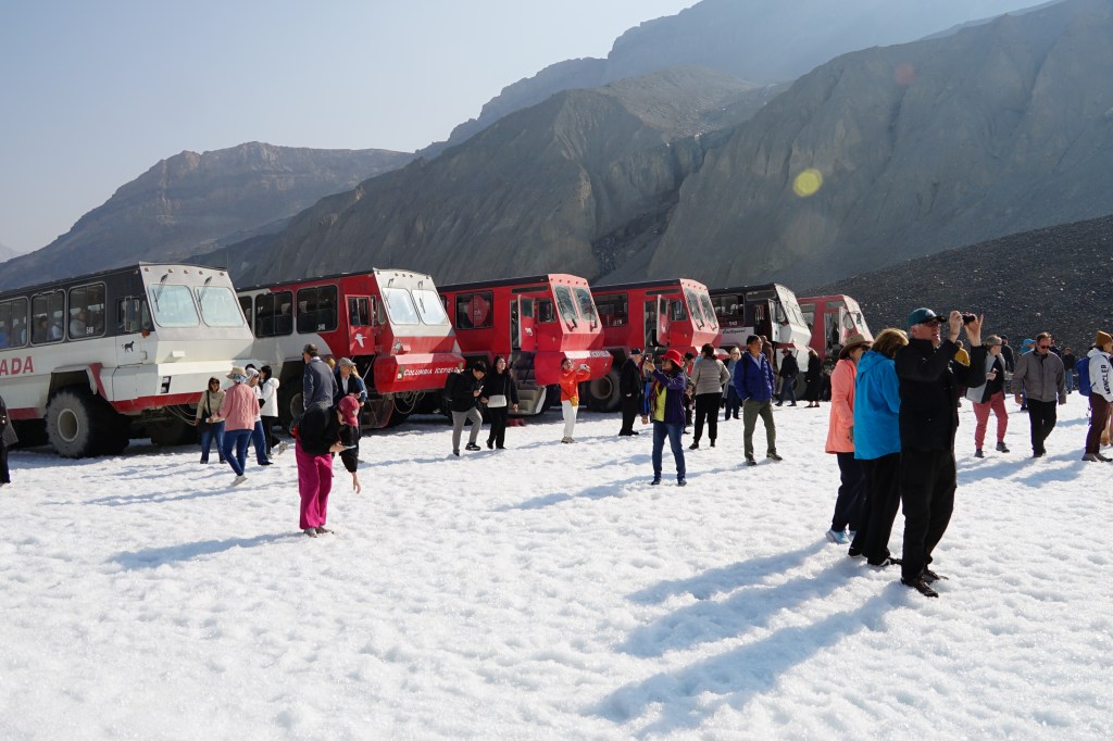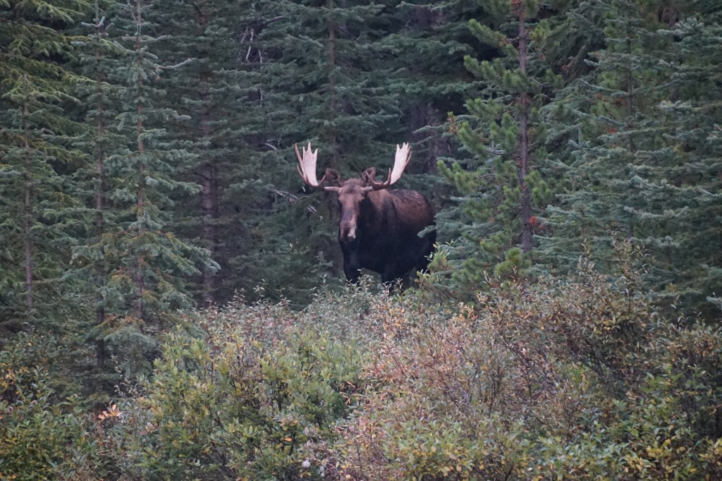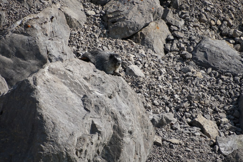 Morgens früh um 7h wurden wir vor dem Nachbarhotel abgeholt. Anschliessend wurden die restlichen Gäste abgeholt. Wir waren 3 Paare, 6 Teilnehmer. Ein Paar kam aus Belgien, das andere aus Bayern. Los ging es auf der Schnellstrasse Richtung Kicking Horse – Pass. Unser junger Führer, in Brasilien geboren, in England (London) aufgewachsen und nun in Kanada lebend erzählte uns die Geschichte, wie der Pass zu seinem Namen kam. Als die Eisenbahn von Toronto nach Vancouver geplant wurde, waren die Rocky Mountains erst sehr spärlich besiedelt und man schickte Männer aus, welche die best mögliche Strecke durch das Gebirge suchen sollten. Einer der Männer, dessen Namen ich vergessen habe, versuchte eines Morgens den Fluss am Pass mit seinem Pferd zu queren, doch das Pferd bockte und schlug aus. Der Mann fiel vom Pferd und verletzte sich schwer. Zur Erinnerung an dieses Ereigniss taufte man den Pass in Kicking Horse – Pass, den Fluss in Kicking Horn – Fluss. In Kanada war es schon früher üblich, dass man den gleichen Namen für eine ganze Region verwendete. Dies taten schon die Leute der First Nation, wie man heutzutage die Indianer nennt. Die Bahnlinie wurde über diesen Pass gebaut, doch die Steigung war massiv und es gab Unfälle mit der Bahn, welche dieseStrecke nicht immer schafften. Da holte man Schweizer Ingenieure, welche das System der Kehrtunnels kannten und nun die Strecke umbauten. Auch wurden die ersten Lawinenschutz- und Steinschaggallerien gebaut. Heute gibt es einen beliebten Aussichtspunkt, wo man einen dieser langen Güterzüge auf mehreren Höhenlagen über den Pass kriechen beobachten kann. Allerdings muss man genau hinsehen, wo das Bahntrasse verläuft, der Pass ist ja bewaldet. Man sieht den Zug kaum. Solch ein Spetakel lässt sich besser am Albulapass oder im Tessin zwischen Faido und Biasca beobachten.