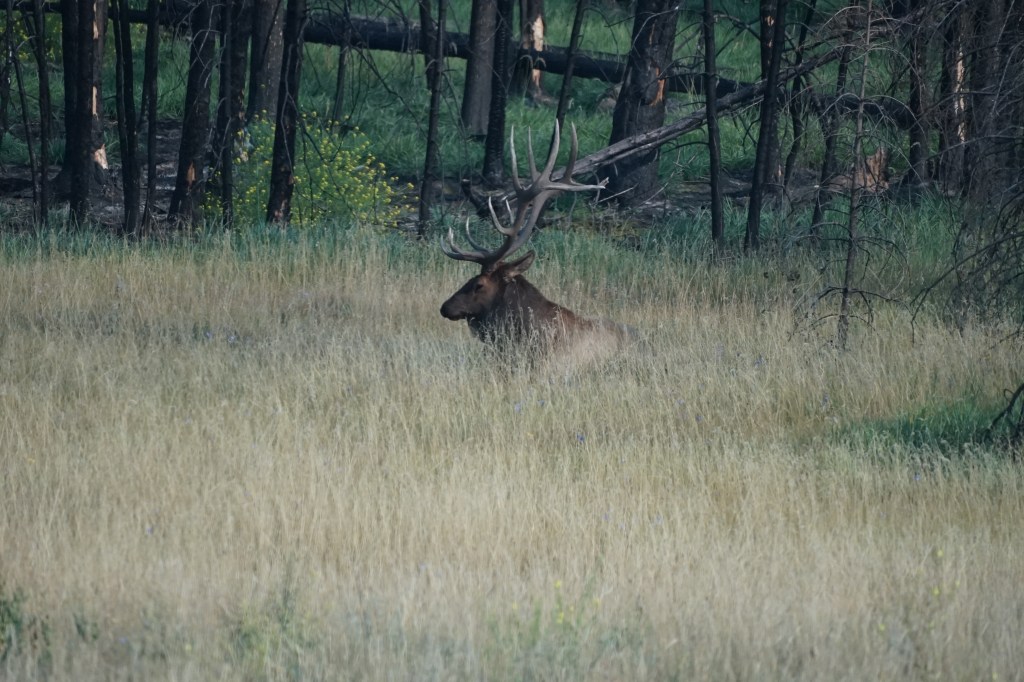 Nach dem Mittagessen fuhren wir nun zum Skiresort Kicking Horse, wo wir mit einer Sesselbahn zum Bärengehege hochfuhren. Das Gehege ist recht gross und erst war der Bär nicht sichtbar. Nach geraumer Zeit sahen wir ihn zu einem Gewässer gehen und dort zu baden. Nachdem er sich etwas abgekühlt hatte, bequemte er sich und kam etwas näher. Nun liess er sich länger beim Futter suchen beobachten. Wir verbrachten gut eine Stunde beim Bären. Die Frage, ob er glücklich ist in seinem wohl grossen Gehege kann niemand beantworten. Tatsache ist dass er als Kleinbär seine Mutter verlor und nichts als dieses wohl grosse Gehege als Lebensraum kennt.