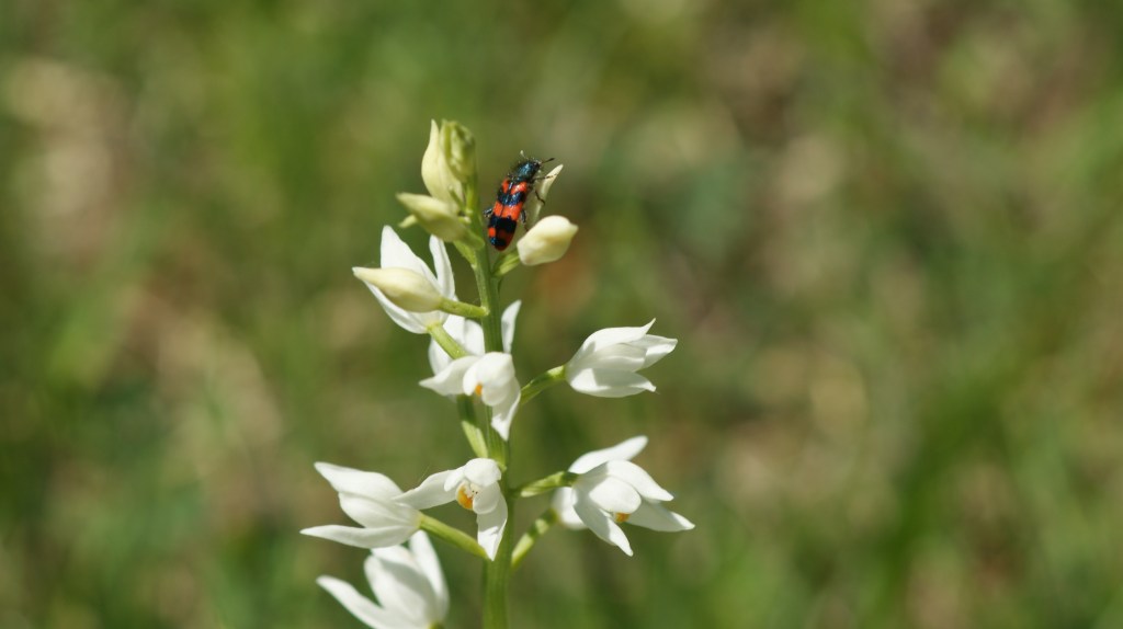 Das Pflanzenschutzgebiet Hinterreben oberhalb Asp bot uns zahlreichen Ohnsporn, aber auch die Helmorchis, das schwärzliche Knabenkraut, erste Spitzorchis und gar der seltene violette Dingel waren zu sehen. Wir waren positiv überrascht, gleichzeitig die einzigen Personen im ganzen Gebiet. Üblicherweise besuchen wir dieses Gebiet früher im Jahr, wenn zahlreich die gemeine Küchenschelle blüht.