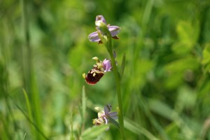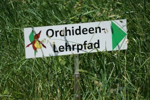 Nach der Mittagsrast suchten wir den kürzesten Abstieg von der Wasserflue Richtung Orchideen – Lehrpfad bei Erlinsbach. Dabei stiegen wir von der Eggmatt auf nicht markierten Pfaden durch den Wald direkt Richtung Erlinsbach ab, wo wir punktgenau beim Landwirtschaftsbetrieb Nähe Orchideen – Lehrpfad ankamen. Waren wir in Asp allein im Pflanzenschutzgebiet, trafen wir immerhin schon drei (3) Personen auf der Wasserflue. Das änderte nun beim Orchideen – Lehrpfad. Mehrere Einzelpersonen und eine grössere Gruppe befanden sich im Hang, wo die Blumen blühen. Natürlich mit Fotoapparaten oder zumindest mit Handy. Die Trampelpfade dürfen ja nicht verlassen werden, so musste man immer achten, welche Abzweigung nimmt man, damit man selbst möglich ungestört im Gebiet unterwegs ist. In diesem sonnigen Hang waren die Helmorchis schon fast alle verblüht, die Pyramidenorchis noch nicht am Aufblühen. Doch wir sahen auch frisch blühende Bocks – Riemenzungen, eine Fliegenorchis, eine Spinnenorchis, eine Bienenragwurz und eine Hummelragwurz. Sicher wäre noch mehr zu sehen gewesen, doch für uns waren zu viele Personen im Gebiet. So suchten wir den kürzesten Weg zur nächsten Postautohaltestelle und fuhren nach Hause zurück.