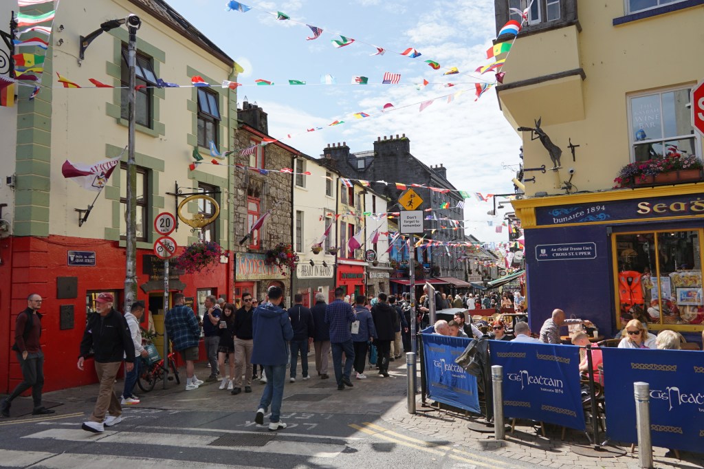 Anschliessend besuchte ich das Zentrum Galways, voll von Touristen. Auch das Herrschaftshaus der Familie Lynch fand ich. Dort wohnte einst ein Richter Lynch, der seinem eigenen Sohn die Henkersschlinge um den Hals legte. Der Sohn war eines Mordes angeklagt, es fand sich jedoch kein Henker, welcher ihn ordnungsgemäss hängen wollte. So tat es dann sein Vater. Dies sei der Ursprung der Lynchjustitz.